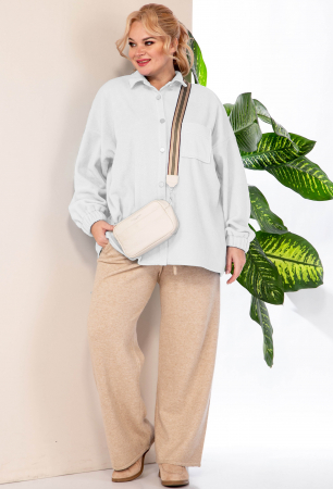 Блузка женская, прямого силуэта, из флисовой ткани со спущенным плечом. Застежка модели на планку и пуговицы, воротник на стойке, по полочке идет накладной карман, манжет рукава на резинке.