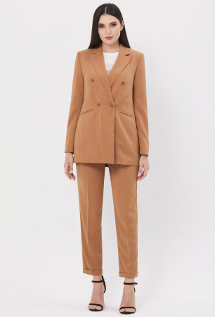 Жакет - комфортный двубортный жакет с застежкой на петли и пуговицы. Перед с карманами с рамками. Рукава втачные двушовные со шлицами и отделочными пуговицами. Воротник отложной с лацканами,на подкладке.