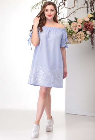 Лёгкое и просторное летнее платье. За счёт украшающей ткань вышивке будет актуально смотреться как на пляже, так и в городском кафе. Прямое по крою имеет спущенное плечо, которое фиксируется благодаря резинке. Рукава фонарики на завязках. Длина 81+-1 см