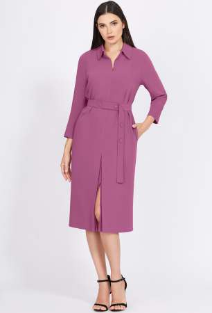 Эффектные платье-миди прямого силуэта, с интересными элементами кроя, выручит во многих ситуациях, будь-то офис, светское мероприятие или ужин в ресторане. Модель с укороченными рукавами-реглан с притачными манжетами, с отложным воротником с цельнокроеной стойкой,с V-образным вырезом горловины, разрезом-складкой в среднем шве переда и функциональными карманами в боковых швах, выполнили из мягкой, приятной, однотонной ткани. Линия талии красиво подчёркивается поясом с отделочными пуговицами в тон.