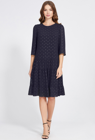 Это платье прямого кроя с оборкой по низу, добавляющей динамичности, позволит создать актуальный и нарядный образ. Модель с округлой формой горловины и укороченными полупрозрачными рукавами сшили из красивого шифона с мерцающим дизайном в тон. Для комфортного ощущения при носке, нижний слой платья выполнили из 100 % вискозной ткани. В среднем шве спинки обработали застёжку на навесную петлю-пуговицу. Это идеальный вариант для вашего особенного мероприятия, в котором вы будете чувствовать себя легко и непринуждённо.
