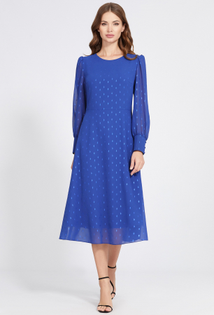 Это лаконичное платье, выполненное из красивого шифона с мерцающим дизайном в тон, подойдёт для тех особых случаев, когда вы хотите выделится из толпы. Модель Х-образного силуэта, с округлой формой горловины, отрезное по линии талии, в верхней части спинки выполнена каплевидная застёжка на навесную петлю и пуговицу, а в боковом шве предусмотрена застёжка на потайную молнию. Платье смотрится легко и элегантно, а нотку романтики добавляют полупрозрачные рукава-фонарики с широкими манжетами. Для комфортного ощущения при носке, нижний слой платья выполнили из 100 % вискозной ткани.