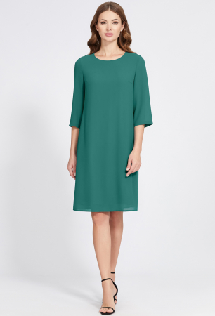 Лаконичный дизайн этого платья компенсируется интересным оформлением спинки в виде плиссированной детали, которая добавляет динамичности при движении. Простой крой платья хорошо сидит на фигуре, а полупрозрачные рукава ? придают фигуре лёгкость. Модель с округлым вырезом горловины выполнили из лёгкого однотонного шифона. Подкладка изготовлена из высококачественной вискозы.