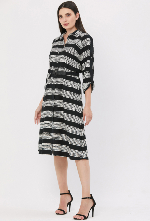 Несмотря на лаконичный крой, это платье-миди непременно окажется в центре внимания благодаря стильному дизайну в полоску и определённым элементам декора. Платье-рубашку А-образного силуэта сшили из итальянской 100% вискозной ткани. Модель с центральной застёжкой на петли и пуговицы, рукавами-реглан с отложными манжетами и патами с отделочными пуговицами. Воротник отложной с отрезной стойкой. В боковых швах обработаны функциональные карманы и разрез. Приталенный силуэт помогает создать интересный пояс из основной ткани. Пояс может отличаться от студийного фото.