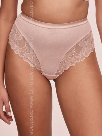 Трусики стринг с высокой талией из коллекции Glow выполнены из роскошного кружева с легким мерцанием, спереди сетка в "крапинку" продублирована сеткой в тон, на спинке пикантный вырез украшен эластичными резинками. Ластовица проложена 100% хлопком.