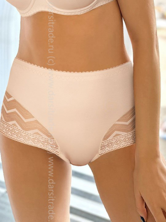 Трусы-слип макси с высокой линией талии. Выполнены из материала "soft" нового поколения и эластичного кружева с геометрическим орнаментом. Материала "soft" нового поколения невероятно мягкий на ощупь, при этом позволяет создать корректирующий эффект в обл