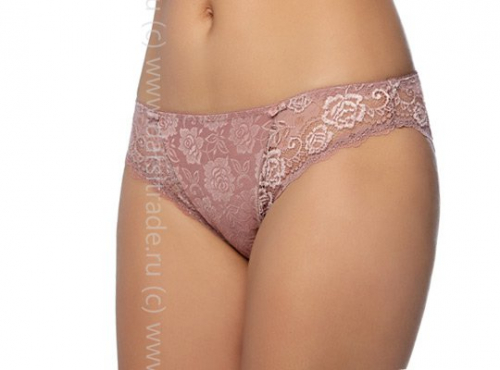 Трусы-слип (панти) со средней линией талии. Выполнены из жаккардового набивного полотна с цветочным арнаментом и эластичного кружева. Срезы по краю ножек обработаны на плоскошовной машине. Украшение: атласный бантик.