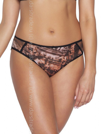Трусы слип выполнены из сетки с хищным принтом, на спинке проймы ног украшены черной сеткой, сложенной вдвое, резинки контрастного черного цвета. Ластовица из 100% хлопка.