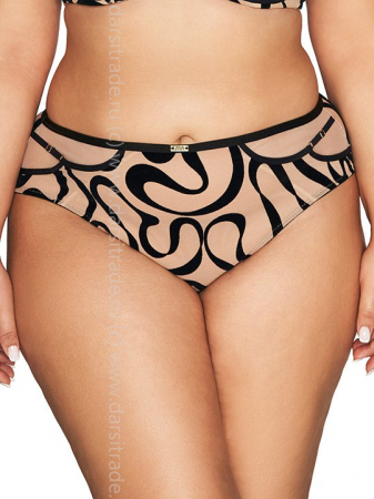 Трусики бразильяна со средней линией талии АVA 2124 VELVET DESERT сложного кроя выполнены из эластичной телесной сетки с флокированными черными лентами, со вставками спереди из телесной сетки, спереди продублированы телесной сеткой, на спинке поймы ног из черной сетки, сложенной вдвое. Ластовица проложена 100% хлопком. Трусики идеально комплектуются с бюстгальтером арт. 2124, 2125.