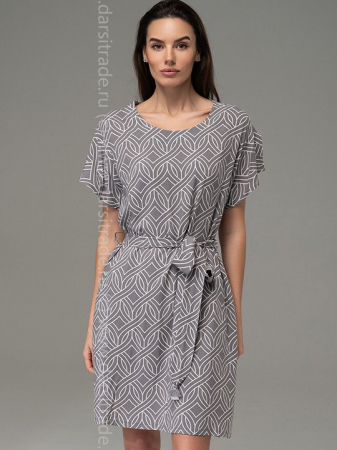 Туника Mia-Amore со спущенными короткими рукавами выполнена из принтованного вискозного полотна. По бокам туники по низу есть разрезы, в боковых швах карманы. Туника комплектуется поясом. Пояс украшен декоративными кисточками.