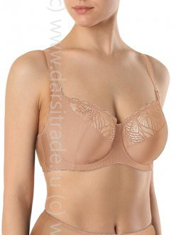 Бюстгальтер с мягкой чашкой, на каркасах. Выполнен из неэластичного трикотажа на чашках для уверенной поддержки, упругой тесьмы, эластичного кружева с элегантным рисунком. Чашка с тройным диагональным членением идеально группирует грудь к центру.
