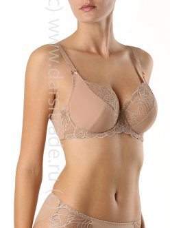 Бюстгальтер с мягкой чашкой, на каркасах. Выполнен из неэластичного трикотажа на чашках для уверенной поддержки, эластичного кружева с элегантным рисунком. Чашка с тройным диагональным членением идеально группирует грудь к центру. Упругие пластины в боков