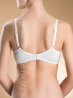 Бюсгальтер из эластичного кружева и эластичного полотна, на каркасах. Верхняя и нижние детали чашек выполнены из эластичного кружева. Боковые детали стана выполнены из эластичного полотна, центральная деталь декорирована кружевом.