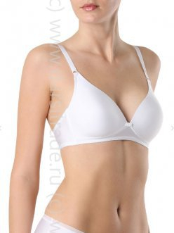 Бюстгальтер с формованной чашкой, без каркасов. Выполнен из тонкого шелковистого полотна с блеском. Невидим под одеждой благодаря гладкой чашке. Модная треугольная форма плотной чашки. Отстегивающиеся на спинке бретели с возможностью застегивать крест-накрест.