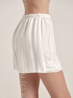 Шорты женские из текстильной ткани. К нижнему срезу переда пришиты манжеты. Верхний срез шорт обработан притачной эластичной тесьмой швом в подгибку.