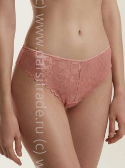Трусики-танга со средней линией талии. Комфортный плоский шов на передней детали, задняя деталь из двойной сетки всгиб, благодаря чему они незаметны под одеждой. Выполнены из нежного эластичного кружева с растительными мотивами, дополненного мягким сетчатым полотном с деликатным блеском.