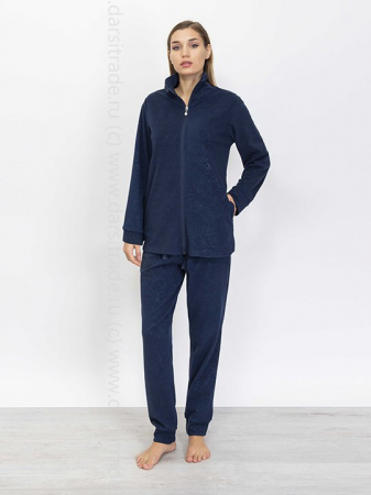 Комплект: кофта на молнии, с длинным рукавом на мягком манжете, с карманами, и брюки с манжетами. Выполнен из флиса. Коллекция "Roses on Pile".
