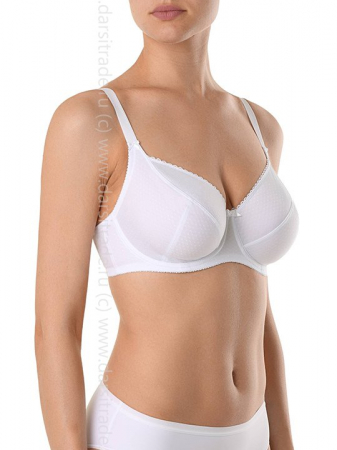 Бюстгальтер с мягкой чашкой, на каркасах, из неэластичного жаккардового полотна. Чашка с тройным диагональным членением, нижние детали ламинированы хлопком для поддержки и комфорта. Стан из упругого трикотажного полотна, функциональные тесьмы и бретели дл