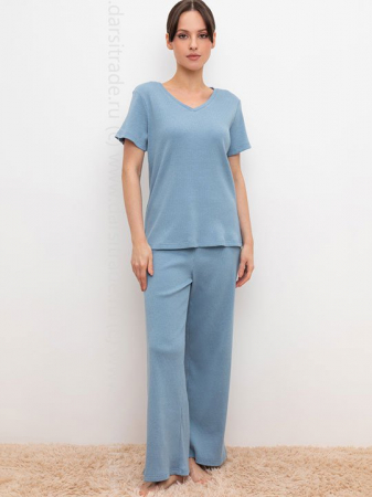 Пижама: футболка и свободные штаны. Выполнена из супрема со спандексом.