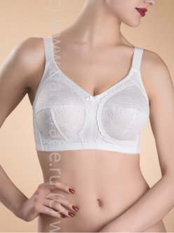 Бюстгальтер с мягкой чашкой, без каркасов, из неэластичного кружевного полотна. Чашка с боковой корректирующей деталью и тройным Т-образным членением. Стан из упругого трикотажа, модульные тесьмы и бретели для максимальной функциональности.