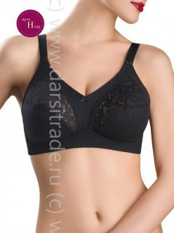 Бюстгальтер с мягкой чашкой, без каркасов, из неэластичного жаккардового полотна и эластичного кружева. Чашка с боковой корректирующей деталью и тройным Т-образным членением. Нижние детали чашек ламинированы хлопком. Высокая центральная деталь обеспечивае