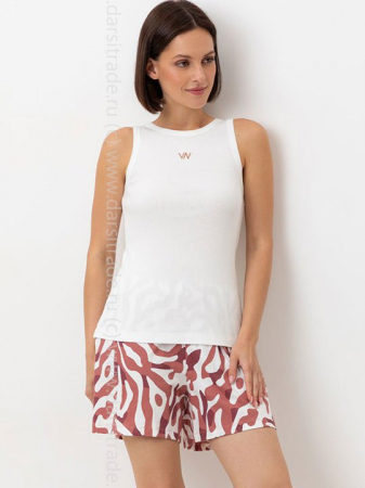 Комплект для комфортного сна из трикотажного полотна с набивным рисунком. В составе 100% натуральный хлопок. Майка из трикотажа в рубчик. Шорты с мягким поясом на резинке удобно садятся по фигуре. Гладкий материал приятен к телу, не теряет форму и позволяет коже дышать.