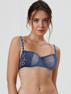 Бюстгальтер c мягкой чашкой, на каркасах. Выполнен из эластичного кружева с графическим рисунком. Чашка с вертикальным членением создает округлую форму и открытую линию декольте. Боковые детали чашек на подкладке для уверенной поддержки.