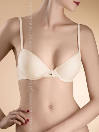 Бюстгальтер "пуш-ап", на каркасах, из тонкого эластичного полотна в полоску. Интегрированный в чашку вкладыш придает дополнительный объем. Узкая центральная деталь визуально облегчает образ. Отстегивающиеся на спинке бретели с возможностью застегивать кре