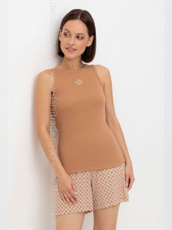 Комплект для комфортного сна из трикотажного полотна с набивным рисунком. В составе 100% натуральный хлопок. Майка из трикотажа в рубчик. Шорты с мягким поясом на резинке удобно садятся по фигуре. Гладкий материал приятен к телу, не теряет форму и позволяет коже дышать.
