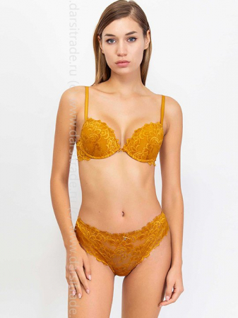 Комплект: бюстгальтер пуш-ап с градуированной чашкой, на косточках, и трусики-бразильяна со средней линией талии. Несъемные регулируемые бретели. Застежка в 2 ряда на 4 позиции. Выполнено из кружева. Коллекция "Berries".
