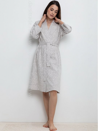 Лёгкий халат на запах с длинными рукавами из трикотажа с добавлением полиэстера. Удобные карманы в боковых швах. С помощью пояса можно регулировать посадку, делая силуэт более женственным. Гладкий материал приятен к телу, не теряет форму и позволяет коже дышать.