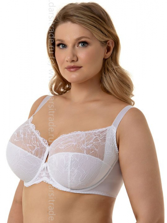 Бюстгальтер на каркасах с мягкой чашкой. Чашки овальной формы с Т-образным членением создают округлую форму, эффектно приподымая грудь. Дополнительная поддержка в боковой части чашки подбирает грудь и собирает её к центру. Подкладка чашки выполнена из натурального хлопка. Обеспечивает максимальное удобство и защиту от раздражений для чувствительной груди. Широкий стан с плотно облегает тело и обеспечивает стабильную комфортную посадку. По центру между чашками стан имеет декоративный вырез, придающий бюстгальтеру лёгкость и воздушность. Ширины бретелей и застежки зависят от размера.