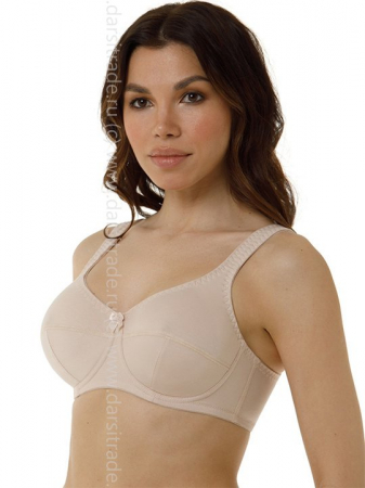 Бюстгальтер без каркасов с мягкой чашкой. Чашки Т-образного членения высоко приподымают грудь и создают округлую наполненную форму. Усиленная бретель снимает нагрузку с плечевого пояса. Широкий стан плотно облегает тело и обеспечивает стабильную комфортную посадку бюстгальтера на фигуре.
