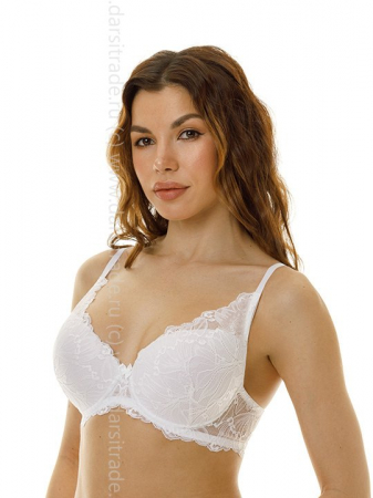 Бюстгальтер на каркасах с формованной чашкой с эффектом Push-Up. Благодаря особенностям внутренней поверхности комфортная чашка эффектно приподымает грудь, визуально увеличивая её объём на 1,5 размера, придавая ей идеальную округлую форму. Открытый стан плотно облегает тело, делая модель визуально лёгкой, при этом обеспечивая стабильную комфортную посадку.