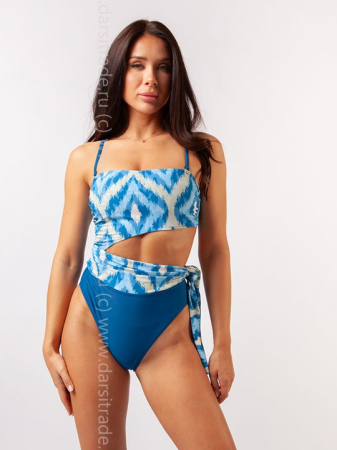Монокини с модным принтом - икат! Лиф без каркаса, с тонкими съемными поролоновыми вкладышами, регулируемые отстегивающимися бретелями. Широкий пояс, высокая пройма для ног.