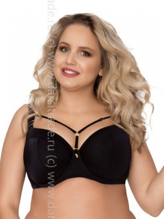 Бюст мягкий, с косточками, с дополнительными боковыми поддержками, бретельки регулируются по длине, на спине застёжка, фурнитура металлическая цвета золота. В зоне декольте съёмная декоративная бретель, регулируемая по длине.