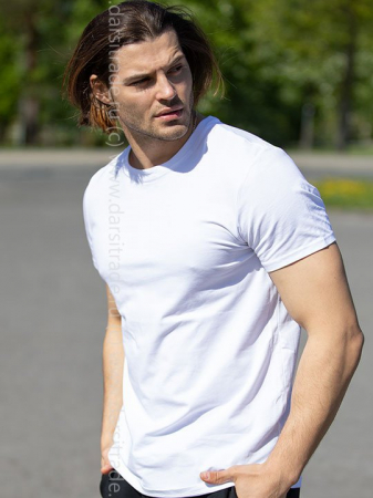 Мужская базовая футболка из хлопкового трикотажа премиального качества – маст хэв каждого мужского гардероба. Универсальная модель с короткими рукавами и округлым вырезом горловины сочетается практически со всеми вещами. Лаконичная белая или черная футболка имеет маленькую нашивку, указывающую на принадлежность к бренду, но эта незначительная деталь никак не влияет на общий классический образ модели.