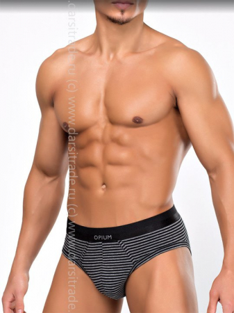 Мужские трусы-слип из хлопка (95%) с добавлением эластана (5%), классической, любимой многими покупателями расцветки в серо-черную горизонтальную полоску. Гульфик выполнен из двух слоев ткани со скрытыми внутренними швами. Шелковистая приятная к телу резинка с логотипом Opium.