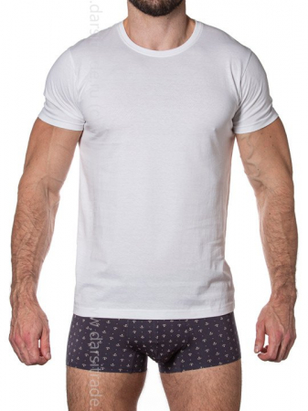 Мужская футболка с коротким рукавом и круглым вырезом.