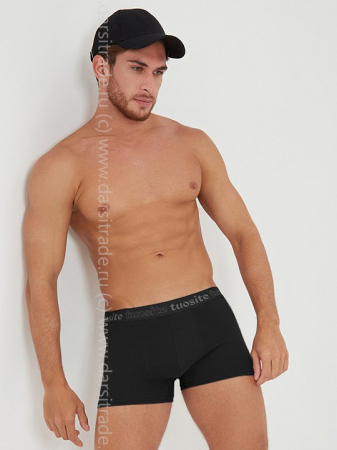 Трусы из высококачественного плотного, однотонного хлопка с добавлением эластана. Резинка шириной 3 см пришита накладным тройным швом. Внешняя и внутренняя сторона пояса украшена логотипом бренда, внутреняя сторона стыковочного шва закрыта атласной лентой с логотипом бренда. Гульфик из двойной ткани отстрочен двойным швом, вшита ластовица, боковые швы отсутствуют.