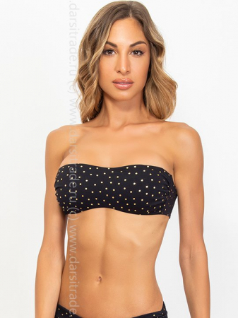 Бюстгальтер-бандо с мягкой чашкой без косточек со съемными формованными вкладышами (без пуш-ап), бочок усилен костью. Отстегивающаяся бретель через шею. Застежка- завязка на спинке.