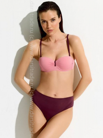 Раздельный купальник из микрофибры. Материал быстро высыхает, комфортно ощущается на теле, устойчив к воздействию хлора и ультрафиолета. Полностью на подкладке, не просвечивает. Лиф «бандо» с вшитыми формованными чашками обеспечивает комфортную поддержку и создает эффект округлой груди. Регулируемые бретели отстегиваются. Плавки «слипы» со средней линией талии эффектно подчеркивают бедра. Купальник отлично подойдет для загара, водного спорта, бассейна и пляжа.