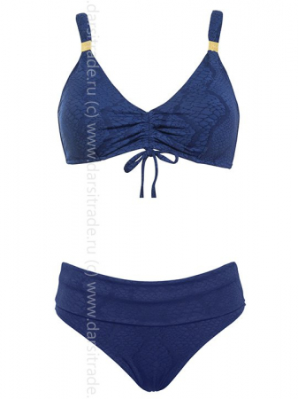 Раздельный купальник: бюстгальтер с мягкой чашкой без косточек со съемными формованными вкладышами без пуш-ап, бочок усилен костью. Трусики-слип с отворачивающимся поясом на высоту 10-16 см (средняя и высокая посадка). Отстегивающиеся бретели с двойным ва