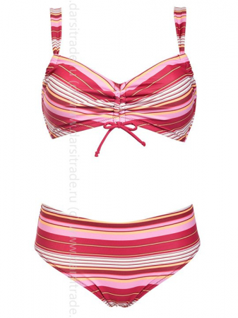 Раздельный купальник: бюстгальтер с мягкой чашкой без косточек со съемными формованными вкладышами без пуш-ап, по пройме регулируемая сборка, бочок усилен костью. Трусики-слип, высота бочков 9 см (средняя посадка). Отстегивающиеся бретели с двойным вариа