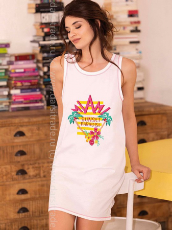 Удлиненная футболка на широких бретелях. Выполнена из хлопка. Длина 85 см. Коллекция "Maxi t-shirt".