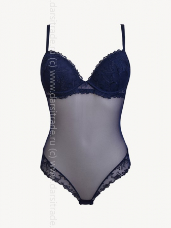 Боди с мягкими чашками на косточках. Несъемные регулируемые бретели, дополнительная застежка на спинке на 2 крючка на три позиции. Выполнено из эластичной сетки и вышивки по сетке. Коллекция "Ninfea".