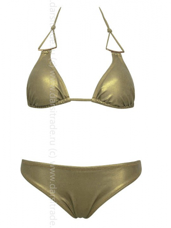 Верх от раздельного купальника: бюстгальтер-триангул с мягкой чашкой которая регулируется сборкой по нижнему краю. Съемные формованные вкладыши без пуш-ап. Застежка - завязка на спинке. Некондиция - нет трусов.