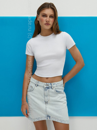 Женская укороченная футболка из трикотажа кашкорсе с коротким рукавом и круглым вырезом. Материал произведенный из мягкого хлопка c добавлением эластана, обладает высокой воздухопроницаемостью, превосходно адаптируется к любой фигуре, хорошо сохраняет форму и цвет, комфортно облегает, подходит для чувствительной кожи. Футболка стильно смотрится благодаря оригинальной вязке «английская резинка» и гармонично дополнит повседневные и деловые образы.