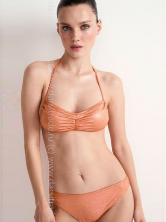 Раздельный купальник из микрофибры с мерцающим эффектом глиттера. Материал быстро высыхает, комфортно ощущается на теле, устойчив к воздействию хлора и ультрафиолета. Полностью на подкладке, не просвечивает. Лиф «бандо» с эластичными завязками на шее и формованными вкладышами обеспечивает комфортную поддержку и создает эффект округлой груди. Плавки «слипы» на подкладке с низкой линией талии и узким боком подчеркивают бедра. Сияние и блеск – главные тренды сезона. Актуальные оттенки, удобный крой и стильное мерцание – идеальный микс, чтобы покорить любой пляж.