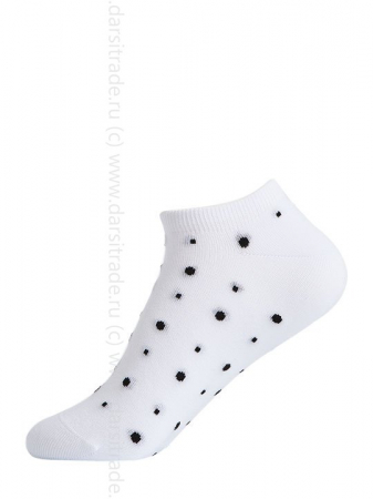 Женские всесезонные укороченные носки из хлопка в горошек. Благодаря мягкой, удобной резинке идеально сидят на ноге и не сползают, а кеттельный (плоский) шов создает дополнительный комфорт. Высококачественный хлопок, входящий в состав изделия, отлично впитывает влагу, обладает высокой воздухопроницаемостью и подходит даже для самой чувствительной кожи. Эластан обеспечивает повышенную прочность и увеличивает износостойкость.